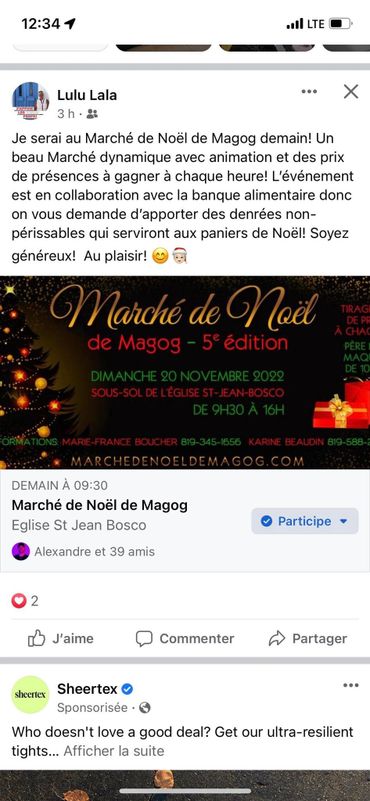 Le Marché de Noël de Magog et affiché sur le site de Tourisme Cantons-de-l'Est
