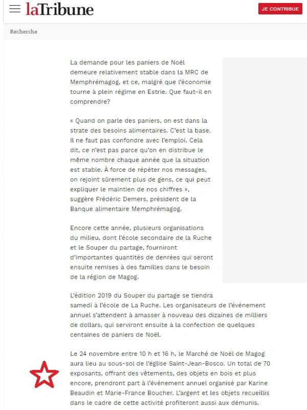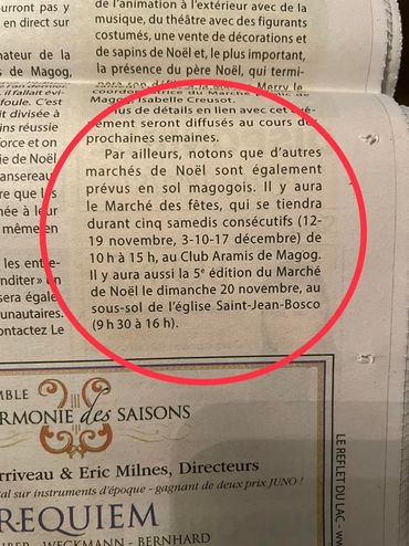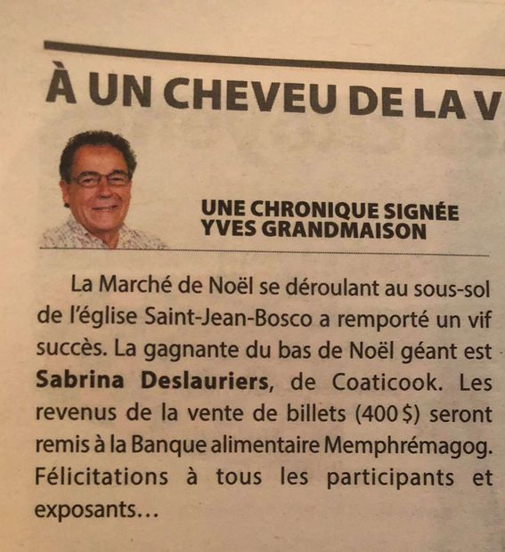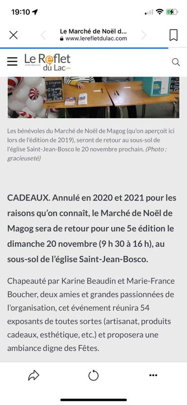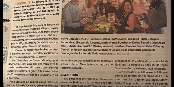 Article dans Le Reflet de Magog, Novembre 2019